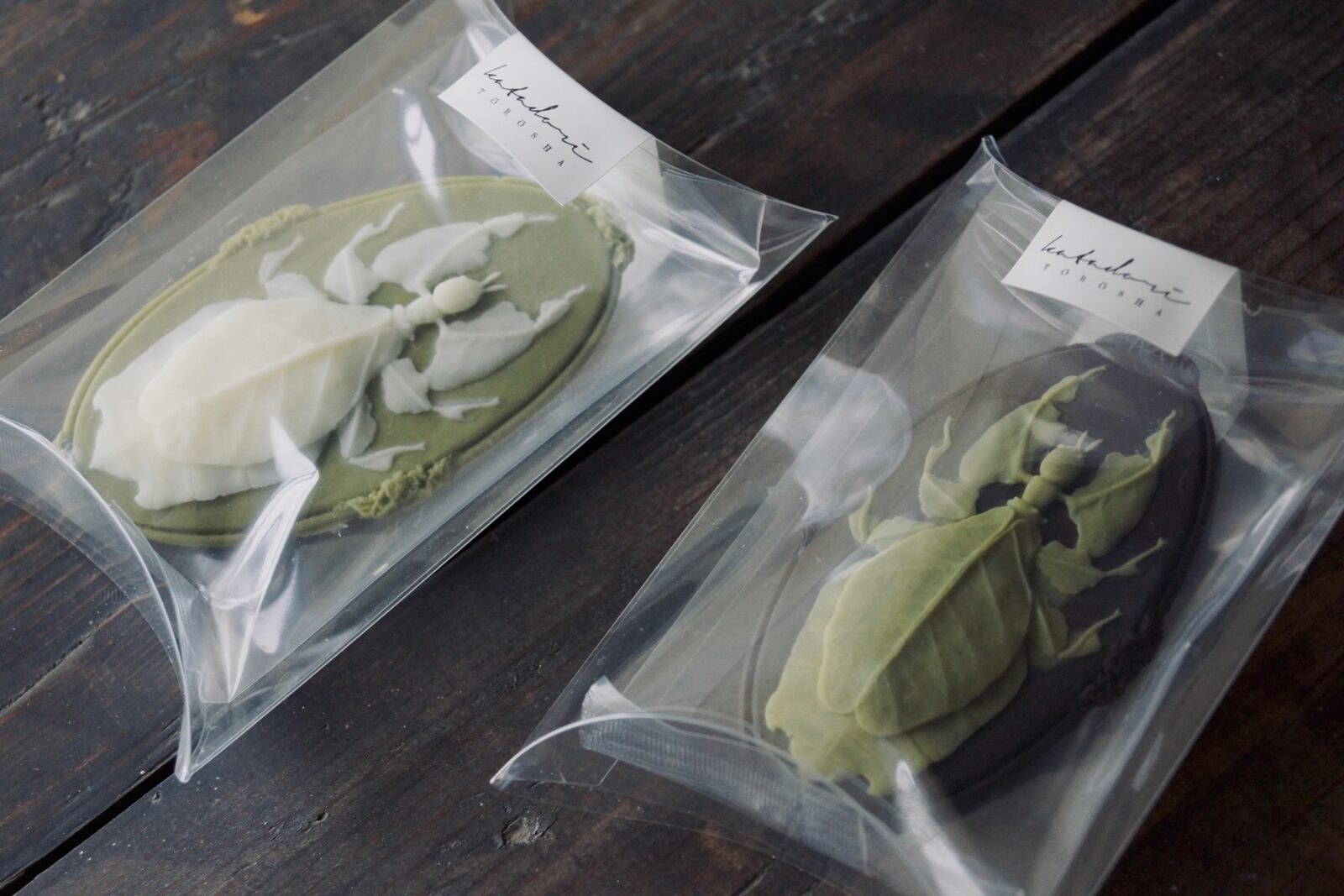 新作・オオコノハムシのタブレットショコラ(抹茶×マンゴー/ビターカカオ×ラズベリー)