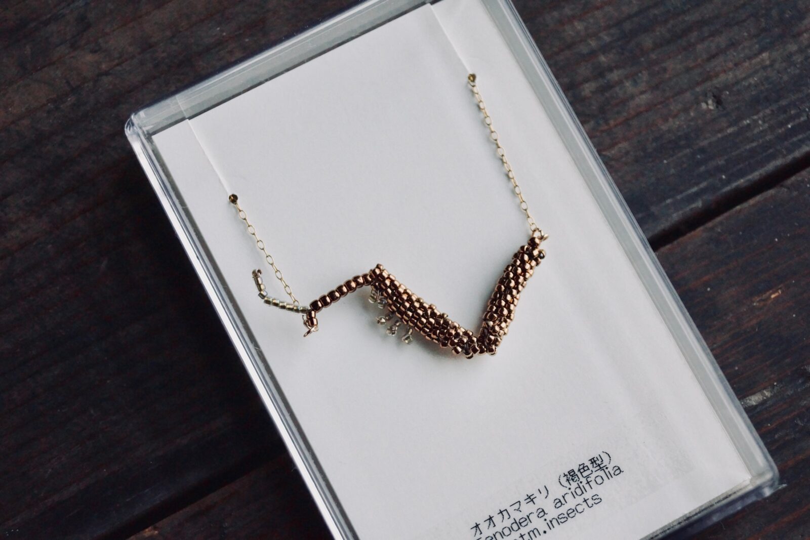 また、コカマキリと褐色型オオカマキリの「鎌(前肢)」にフォーカスしたユニークなアクセサリーは、身に着けるだけで話題を誘うこと請け合いです。