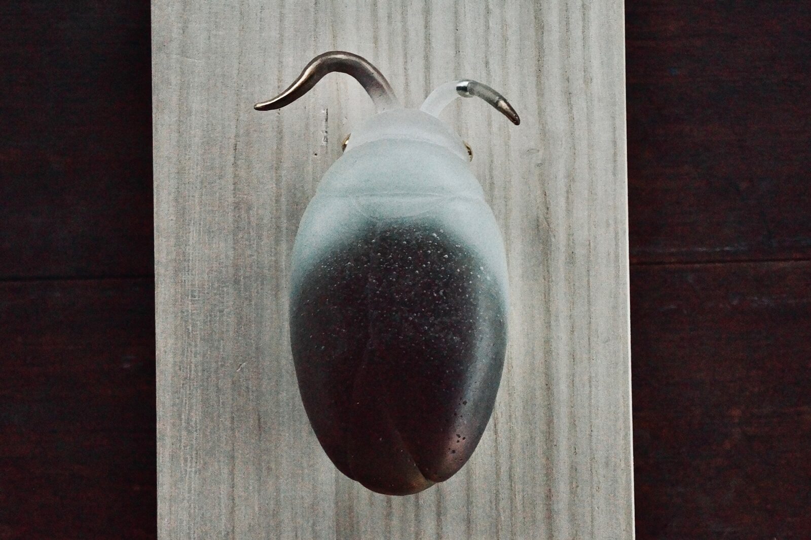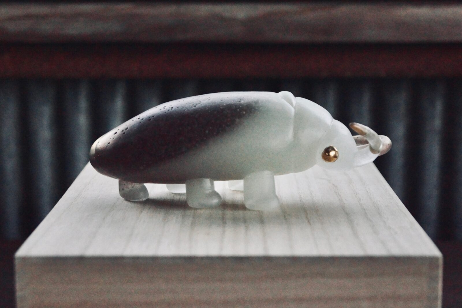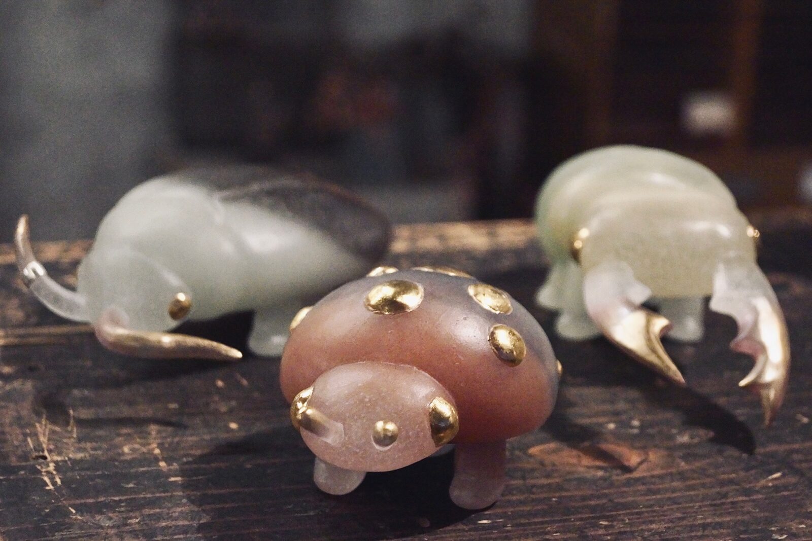 主にガラスの鋳造技法を用いて制作された、現実と架空の要素が入り混じった虫たちの作品。