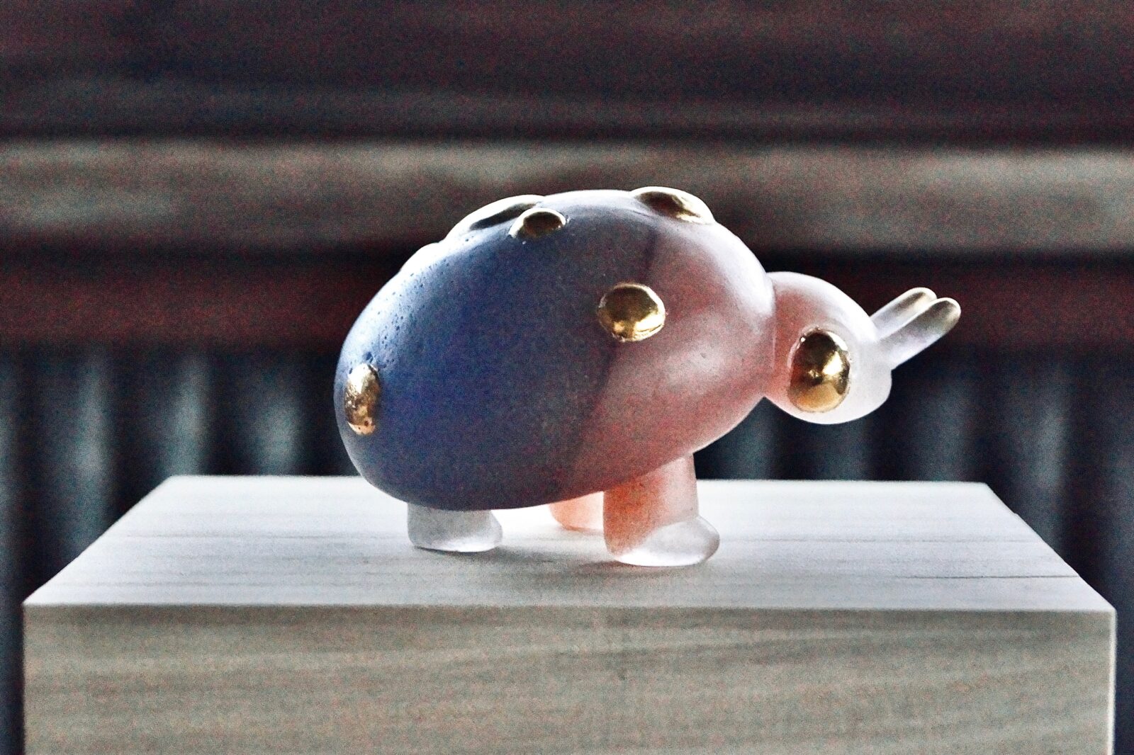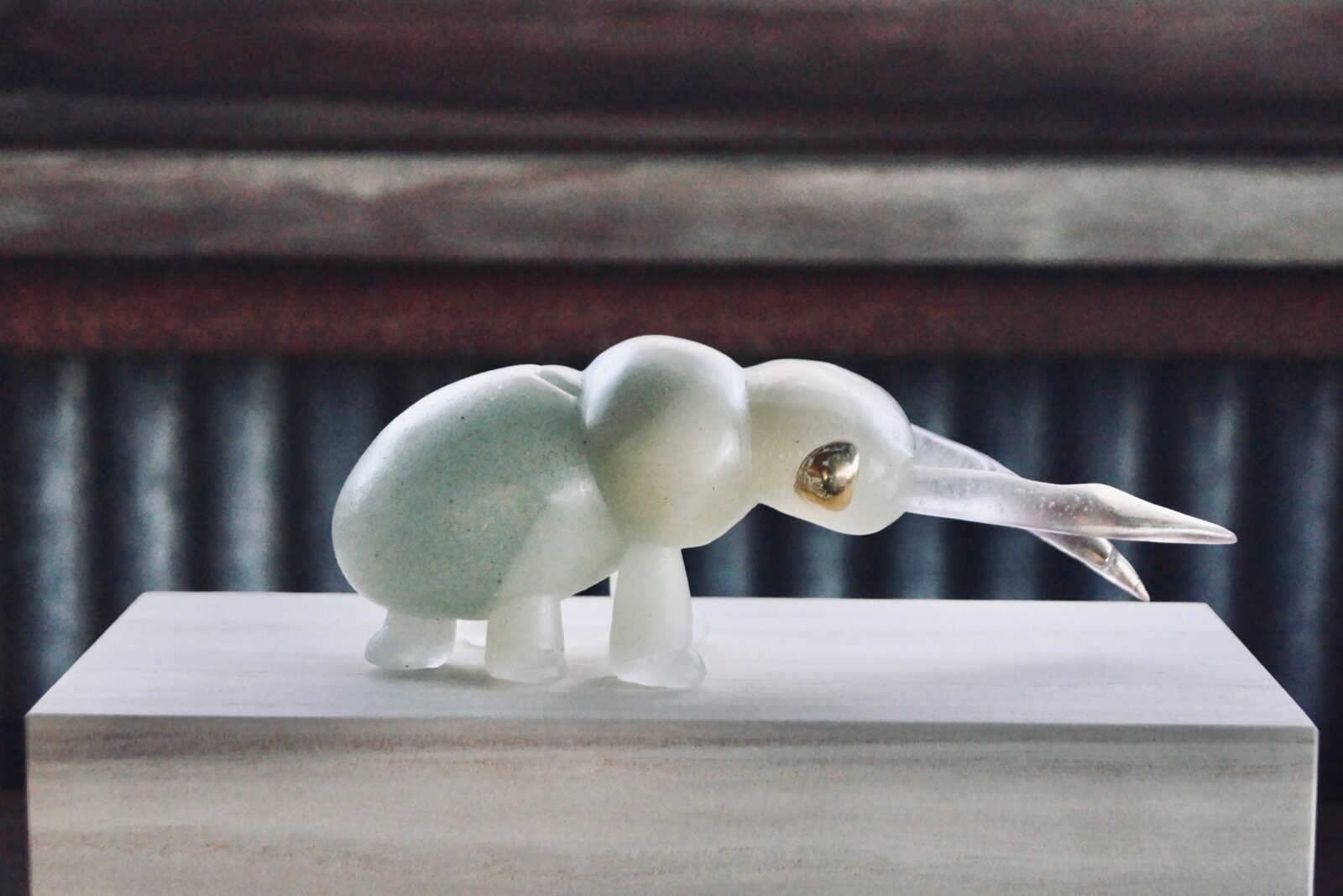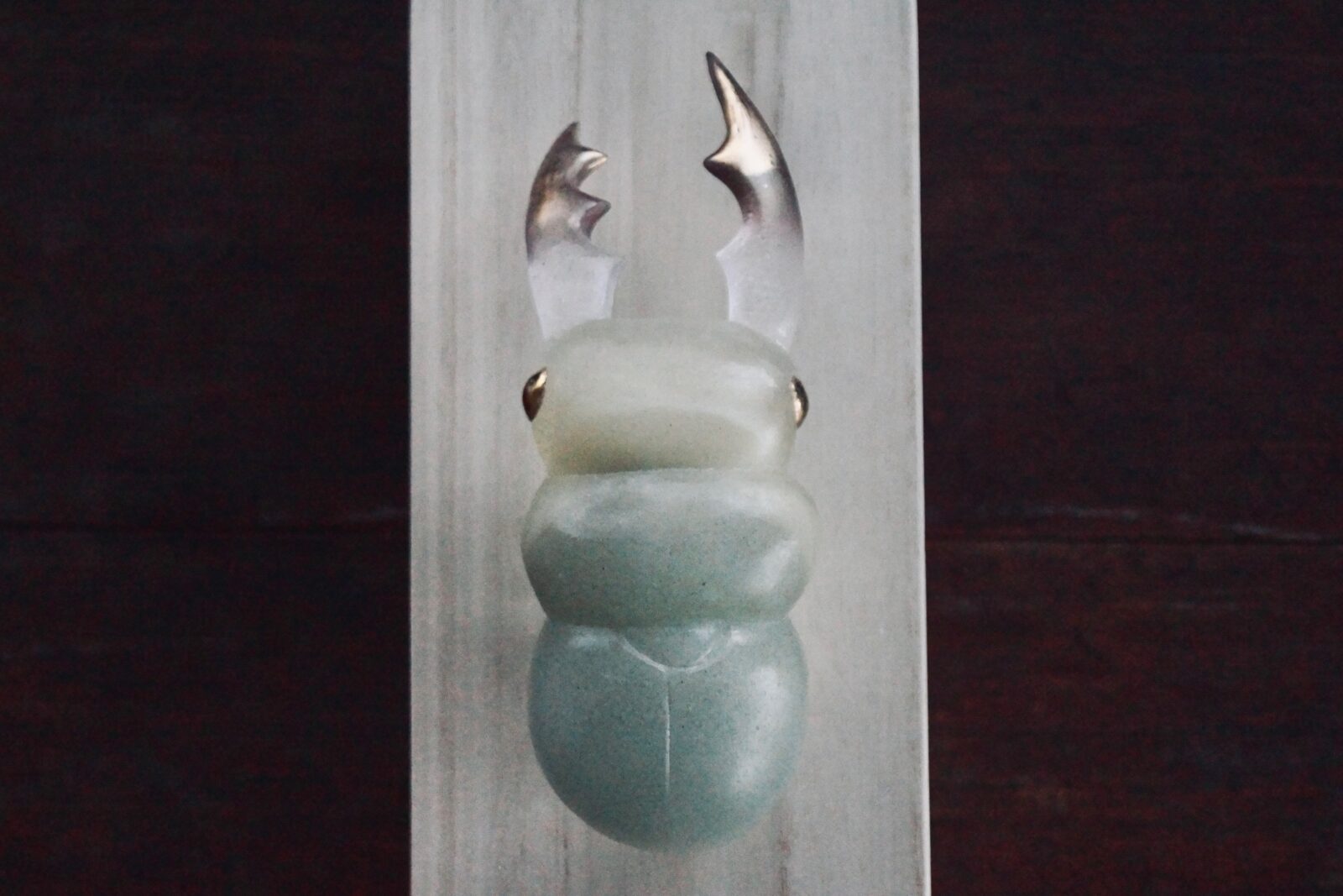 主にガラスの鋳造技法を用いて制作された、現実と架空の要素が入り混じった虫たちの作品。