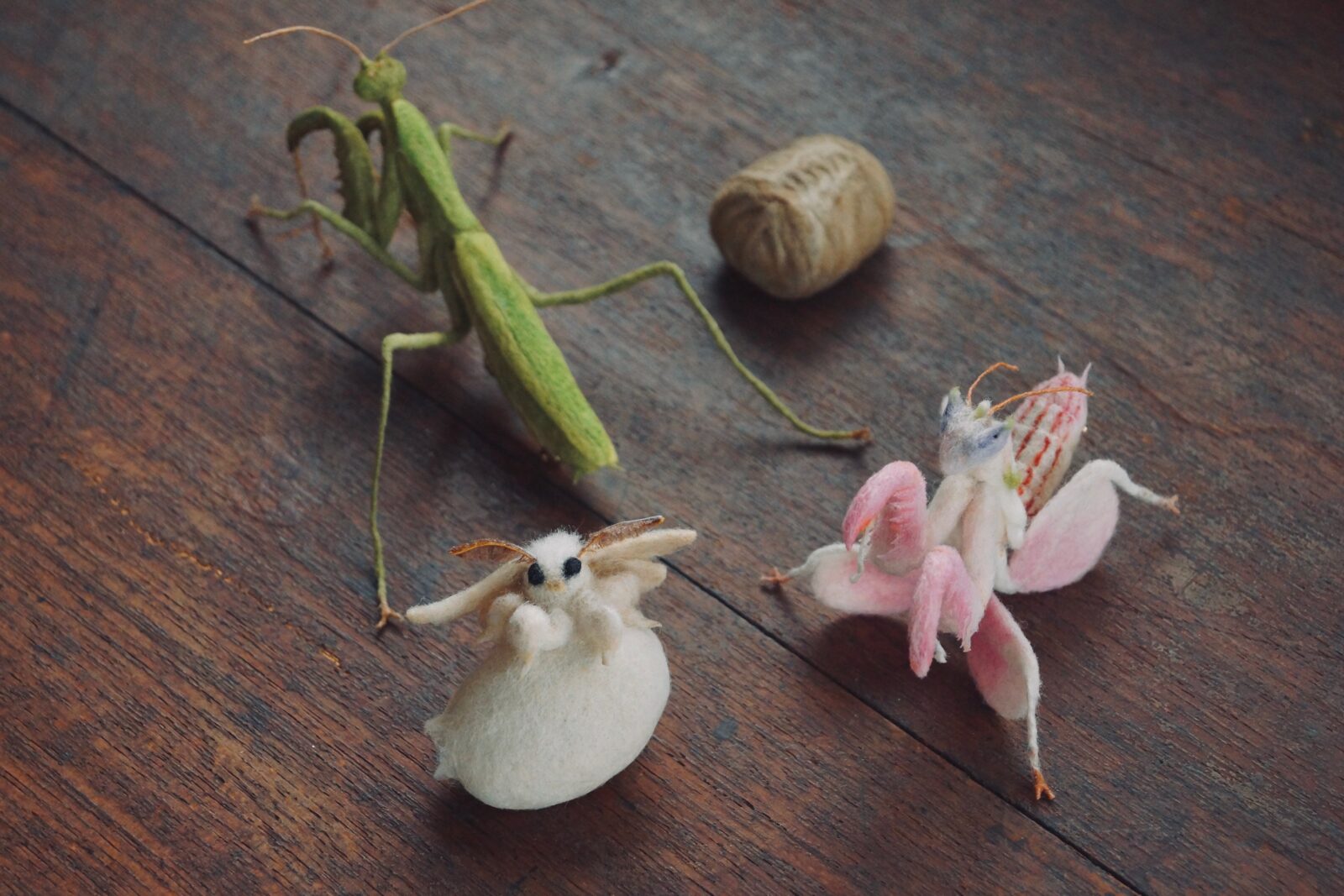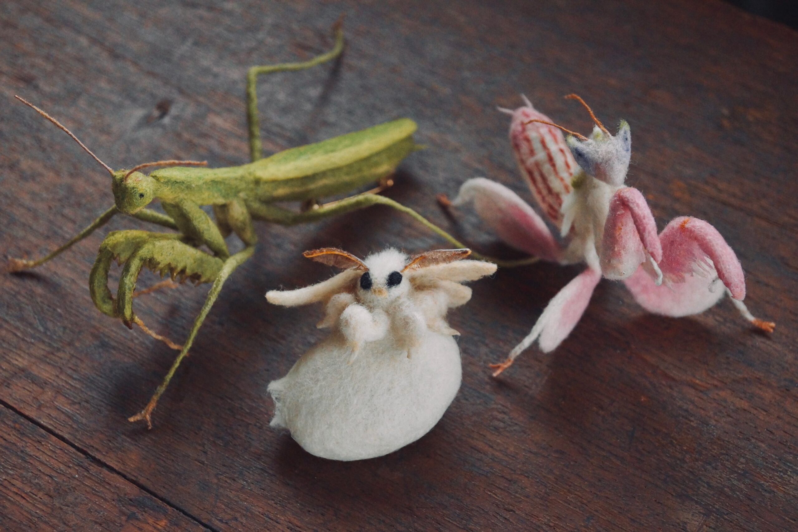 「羊毛」という素材で表現できうる最大限の技術を持って生み出された、あたたかみのある昆虫モチーフ作品の数々。